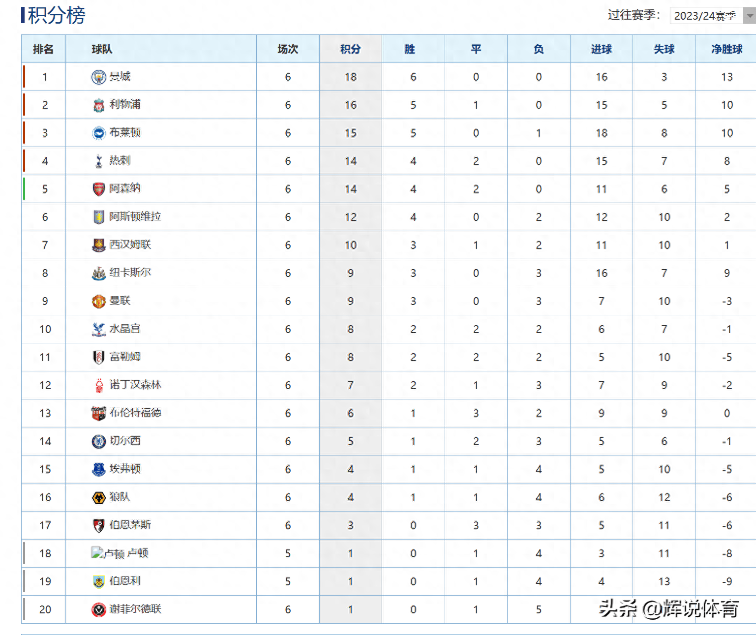 在主场,他没有倒在风中,11投5中,球队缺少的是萨拉赫这样的槌球角色利物浦经受住了路上的考验只要阿里森不露出脚,门还是相当安全的范迪克不必自夸,但洛夫伦有点尴尬在联赛七连胜的同时,继续保持联赛不败,领跑英超积分榜接下来的三支球队,纽卡斯尔联队,阿森纳,曼城,谁会给红军第一个;5 萨拉赫在比赛中表现突出,凭借法比尼奥的进球,他梅开二度,确保了利物浦的胜利这场胜利使利物浦以42分升至积分榜第二位6 除了曼城和利物浦,其他球队也表现出色切尔西在比赛中战平,积40分排名第三热刺和阿森纳在周末的比赛中获胜,分别积39分,位列第四和第五7 利物浦的关键球员包;在2023年12月11日的英超积分排名榜上,利物浦位居首位在2023年12月10日进行的英超第16轮比赛中,利物浦客场以21逆转战胜水晶宫,从而超越阿森纳,登上积分榜首位萨拉赫助攻,埃利奥特打进了决定性的一球阿斯顿维拉在主场以10击败阿斯顿维拉,巩固了联赛第三的位置,并在主场保持连胜麦金打进了;英超联赛的最新排名显示,曼联继续领跑积分榜,20场比赛过后,他们取得了12场胜利,8场平局,没有败绩,总共打进43球,仅失19球,净胜球达到24个,积44分紧随其后的是曼城,他们已经踢了22场比赛,12胜6平4负,进球33个,失球16个,净胜球17个,总积分为42分阿森纳排名第三,21场比赛中,他们。